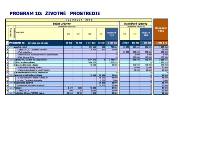 Rozpočet mesta – Program 10