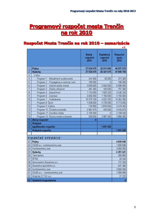 Hlavná stránka > Samospráva > Transparentný Trenčín > Rozpočet mesta > Rozpočet mesta – rok 2010 > Rozpočet mesta – Rozpočet_text