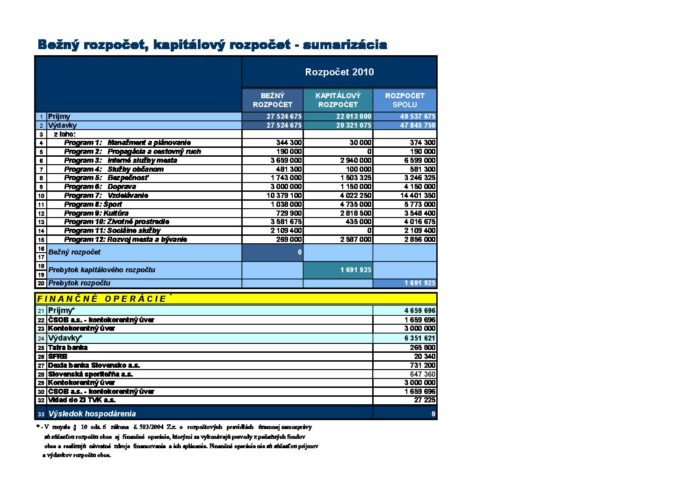 Hlavná stránka > Samospráva > Transparentný Trenčín > Rozpočet mesta > Rozpočet mesta – rok 2010 > Rozpočet mesta – Sumarizácia