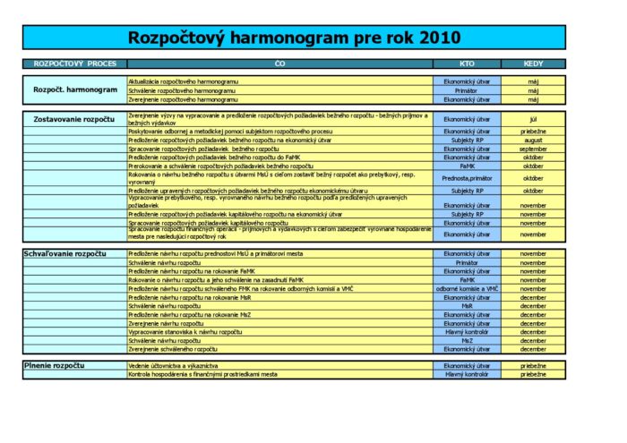 Hlavná stránka > Samospráva > Transparentný Trenčín > Rozpočet mesta > Rozpočet mesta – rok 2010 > Rozpočtový harmonogram 2010