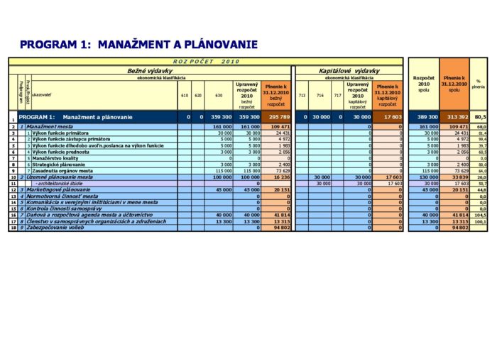 Hlavná stránka > Samospráva > Transparentný Trenčín > Rozpočet mesta > Rozpočet mesta – rok 2010 > Záverečný účet Program 1