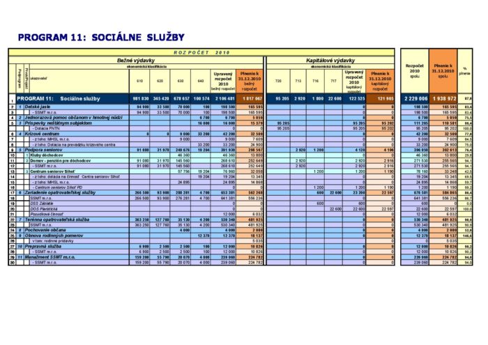 Hlavná stránka > Samospráva > Transparentný Trenčín > Rozpočet mesta > Rozpočet mesta – rok 2010 > Záverečný účet Program 11