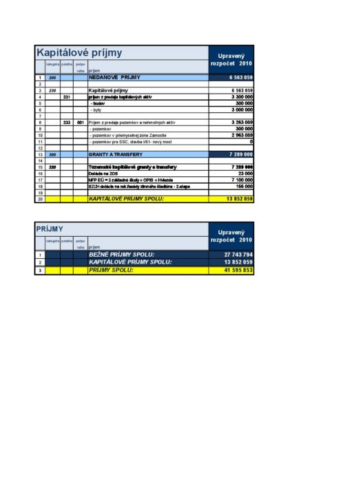 Zmena rozpočtu Kapitálové príjmy MsZ 20100228