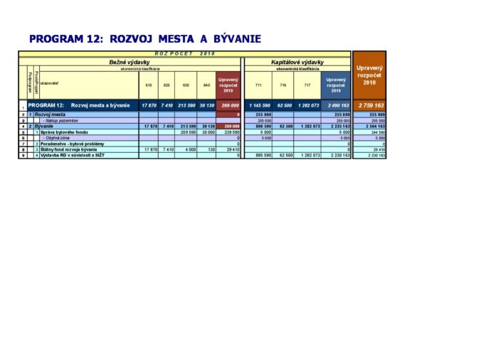 Zmena rozpočtu Program 12 MsZ 20100228