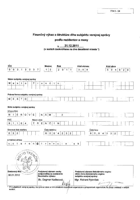 Hlavná stránka > Samospráva > Transparentný Trenčín > Rozpočet mesta > Rozpočet mesta – rok 2011 > FIN504