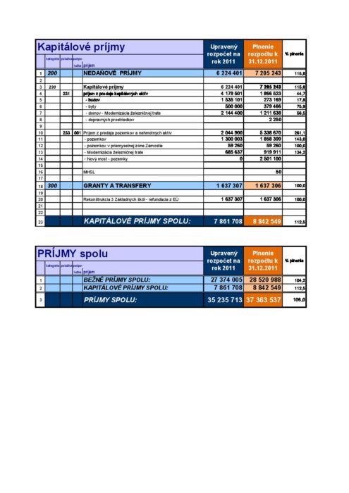 Hlavná stránka > Samospráva > Transparentný Trenčín > Rozpočet mesta > Rozpočet mesta – rok 2011 > Kapitálové príjmy