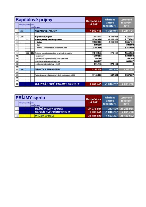 Hlavná stránka > Samospráva > Transparentný Trenčín > Rozpočet mesta > Rozpočet mesta – rok 2011 > Kapitálové príjmy MsZ 2011-12-14