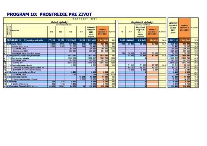 Hlavná stránka > Samospráva > Transparentný Trenčín > Rozpočet mesta > Rozpočet mesta – rok 2011 > Program 10