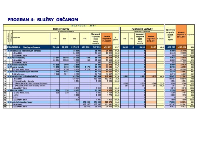 Hlavná stránka > Samospráva > Transparentný Trenčín > Rozpočet mesta > Rozpočet mesta – rok 2011 > Program 4