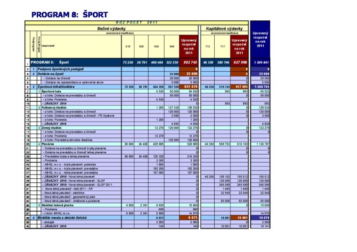 Hlavná stránka > Samospráva > Transparentný Trenčín > Rozpočet mesta > Rozpočet mesta – rok 2011 > Program 8 MsZ 2011-08-31