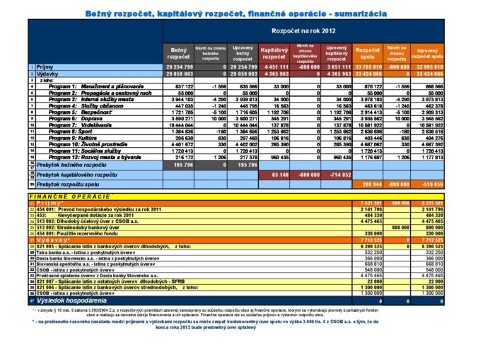 Schválená zmena rozpočtu 12122012_sumarizacia