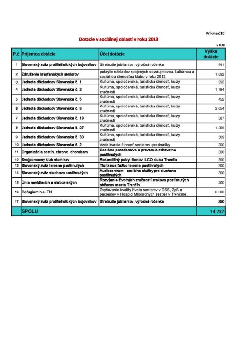 Hlavná stránka > Samospráva > Transparentný Trenčín > Rozpočet mesta > Rozpočet mesta – rok 2013 > Príloha č.10