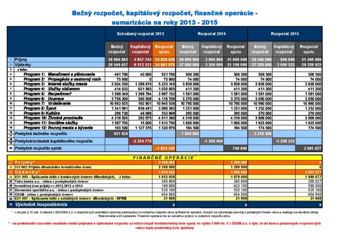 Rozpočet Mesta Trenčín na roky 2013-2015_sumarizácia