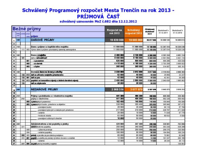 Schválený rozpočet Mesta Trenčín na rok 2013_prijmy