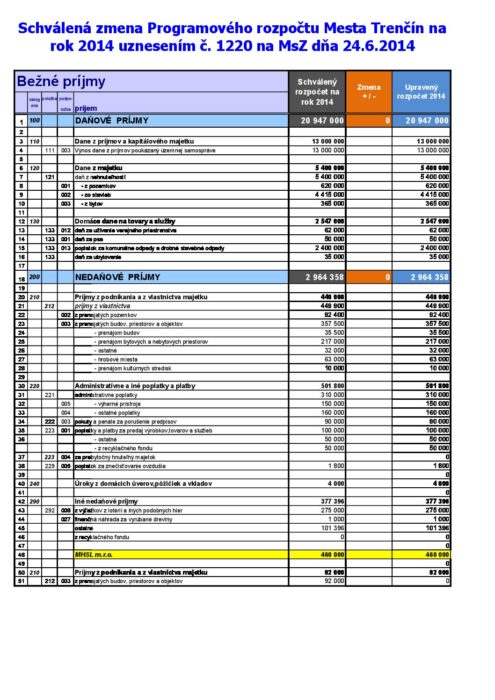 Schválená zmena rozpočtu MsZ 24062014 príjmy