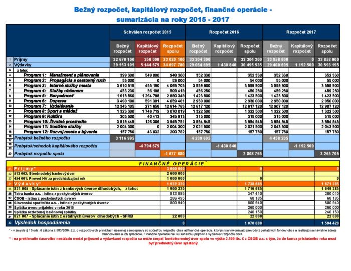 Schválený rozpočet 2015 – 2017 – sumarizacia