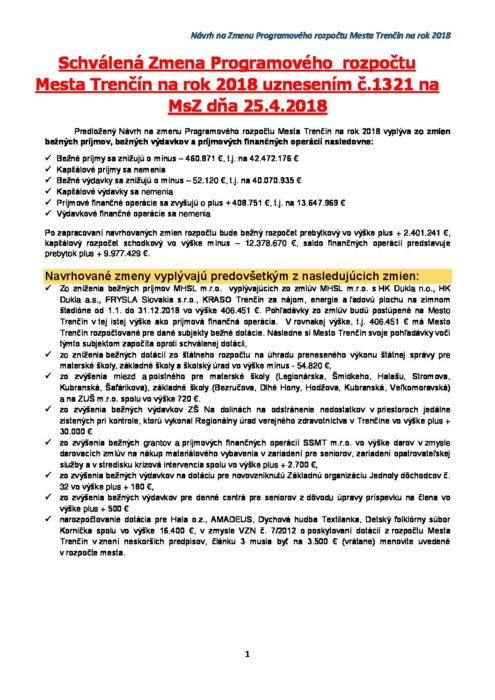 Schválená Zmena Programového rozpočtu MsZ 2018-04-25