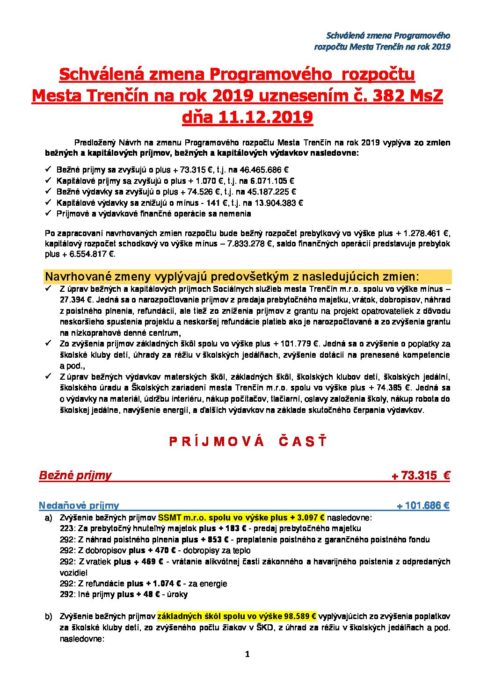Schválená zmena Programového rozpočtu MsZ11122019