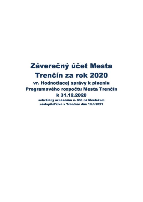 Hlavná stránka > Samospráva > Transparentný Trenčín > Rozpočet mesta > Rozpočet mesta – rok 2020 > Hodnotiaca správa za rok 2020