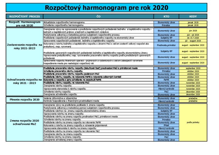Rozpočtový harmonogram 2020