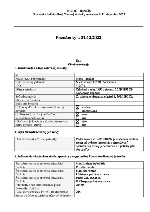 Hlavná stránka > Samospráva > Transparentný Trenčín > Rozpočet mesta > Rozpočet mesta – rok 2022 > Poznámky k účtovnej závierke za rok 2022