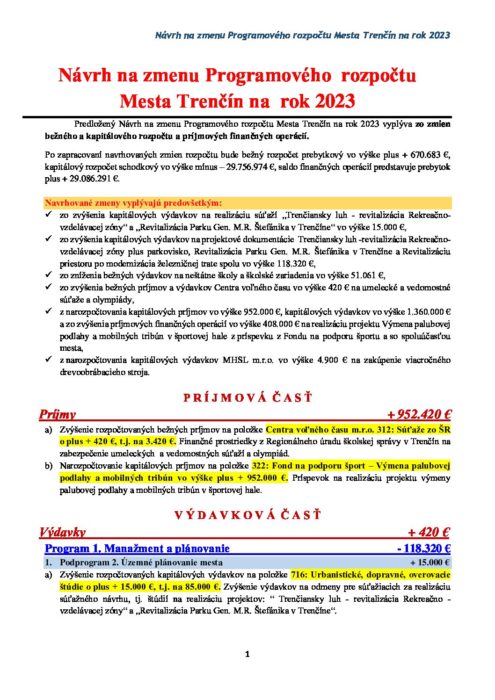 Hlavná stránka > Samospráva > Transparentný Trenčín > Rozpočet mesta > Rozpočet mesta – rok 2023 > Návrh na zmenu rozpočtu MsZ21022023