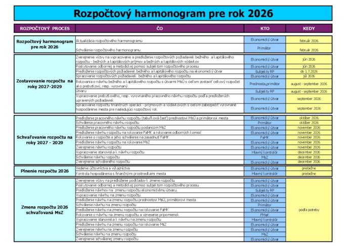 Rozpočtový harmonogram 2026