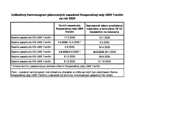 Harmonogram zasadnutia KR UMR TN_2025