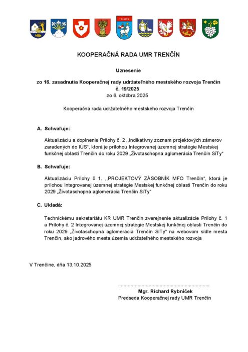 Hlavná stránka > Samospráva > Udržateľný mestský rozvoj > Programové obdobie 2021 – 2027 > uznesenie_19_2025_IUS