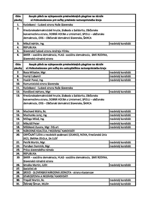 Rozpis plôch – voľby do orgánov samosprávnych krajov