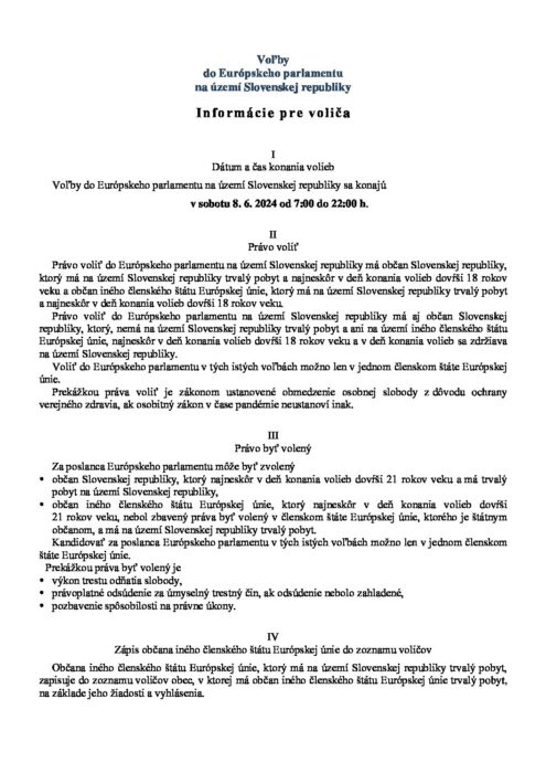 Hlavná stránka > Samospráva > Voľby > Voľby do Európskeho parlamentu 2024 > Informácie pre voliča v slovenskom jazyku