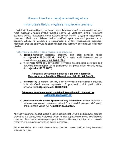Hlavná stránka > Samospráva > Voľby > Voľby do Národnej rady Slovenskej republiky 2023 > Hlasovací preukaz informácia na web