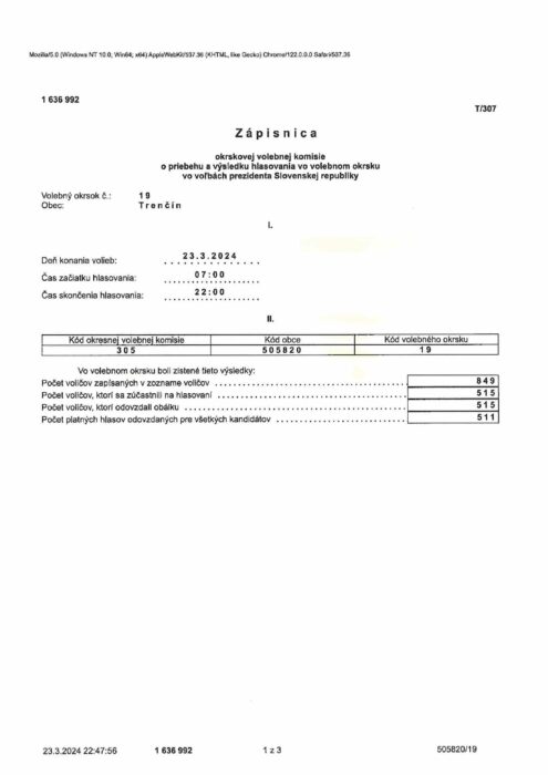 Hlavná stránka > Samospráva > Voľby > Voľby prezidenta Slovenskej republiky 2024 > volebný okrsok č.19