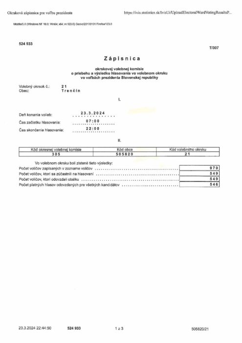 Hlavná stránka > Samospráva > Voľby > Voľby prezidenta Slovenskej republiky 2024 > volebný okrsok č.21