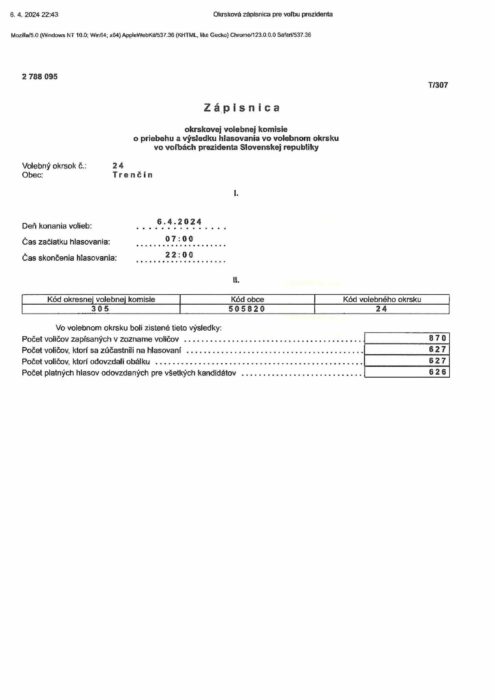 Hlavná stránka > Samospráva > Voľby > Voľby prezidenta Slovenskej republiky 2024 > volebný okrsok č.24