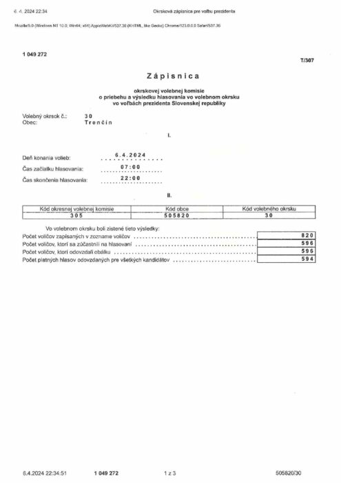 Hlavná stránka > Samospráva > Voľby > Voľby prezidenta Slovenskej republiky 2024 > volebný okrsok č.30
