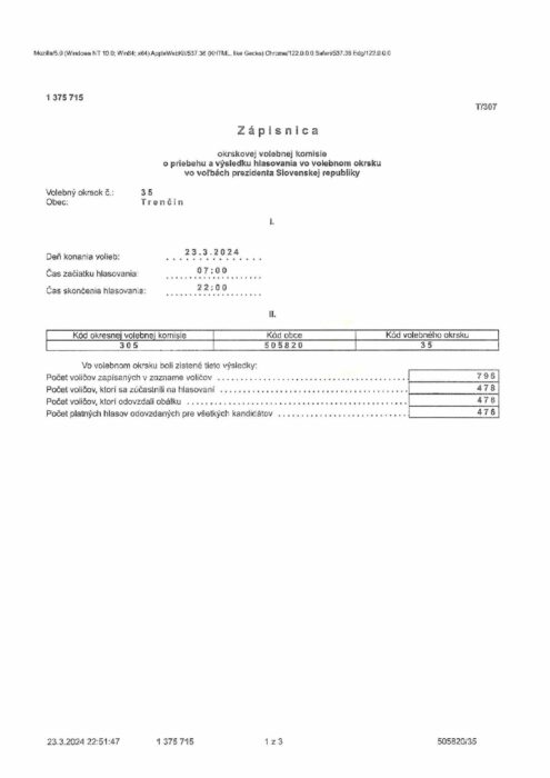 Hlavná stránka > Samospráva > Voľby > Voľby prezidenta Slovenskej republiky 2024 > volebný okrsok č.35