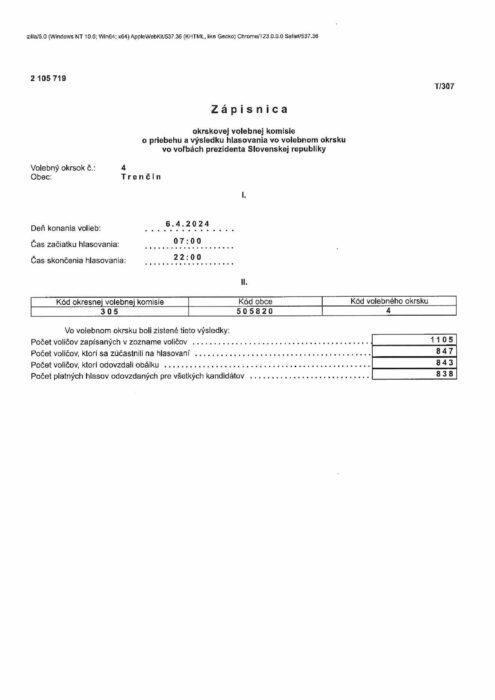 Hlavná stránka > Samospráva > Voľby > Voľby prezidenta Slovenskej republiky 2024 > volebný okrsok č.4