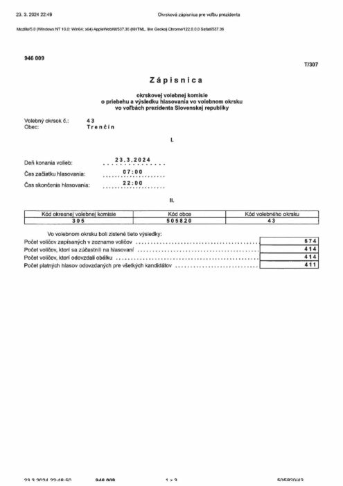 Hlavná stránka > Samospráva > Voľby > Voľby prezidenta Slovenskej republiky 2024 > volebný okrsok č.43