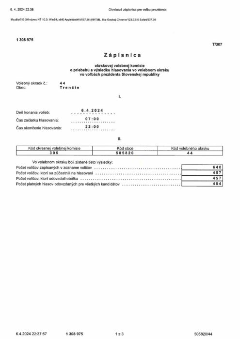 Hlavná stránka > Samospráva > Voľby > Voľby prezidenta Slovenskej republiky 2024 > volebný okrsok č.44