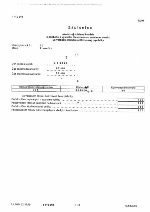 Hlavná stránka > Samospráva > Voľby > Voľby prezidenta Slovenskej republiky 2024 > volebný okrsok č.50
