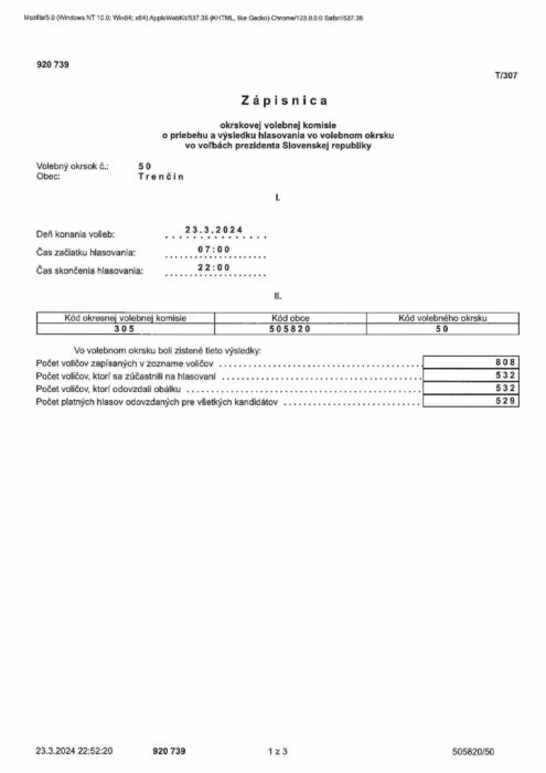 Hlavná stránka > Samospráva > Voľby > Voľby prezidenta Slovenskej republiky 2024 > volebný okrsok č.50
