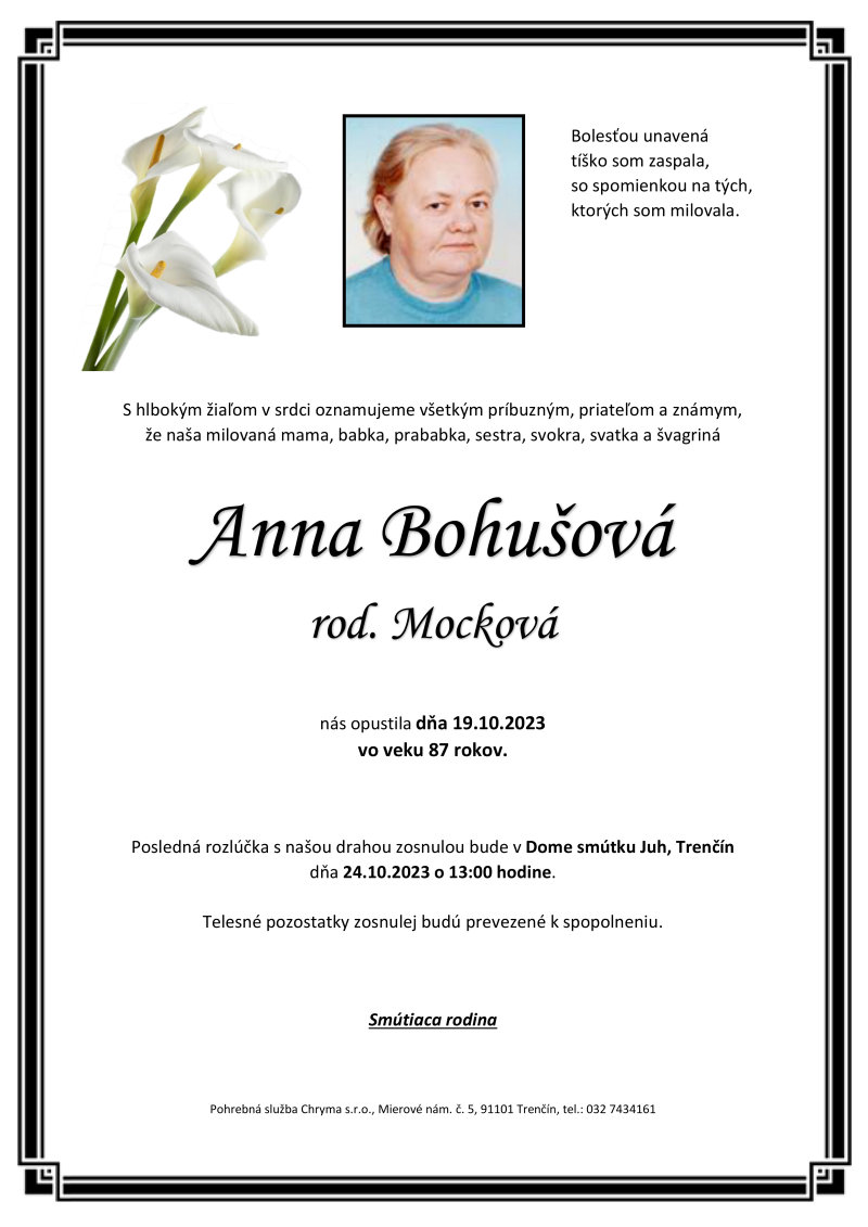 Anna Bohušová rod. Mocková