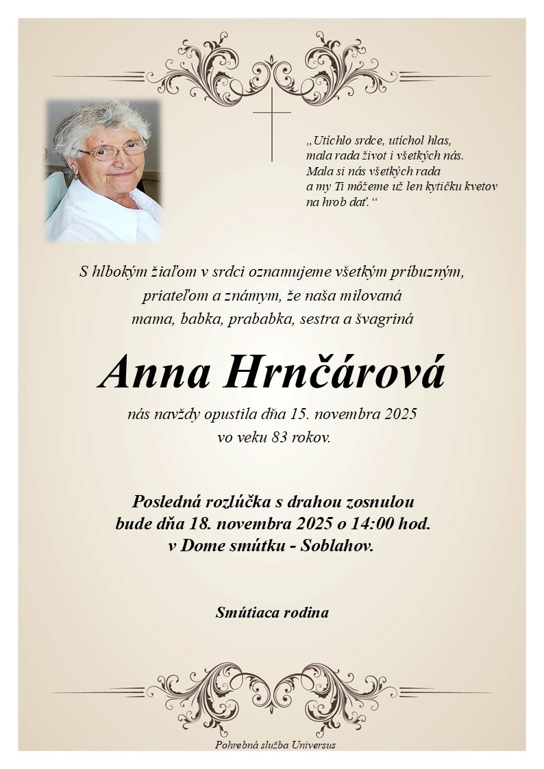 Posledná rozlúčka sa uskutoční dňa: 18.11.2025.