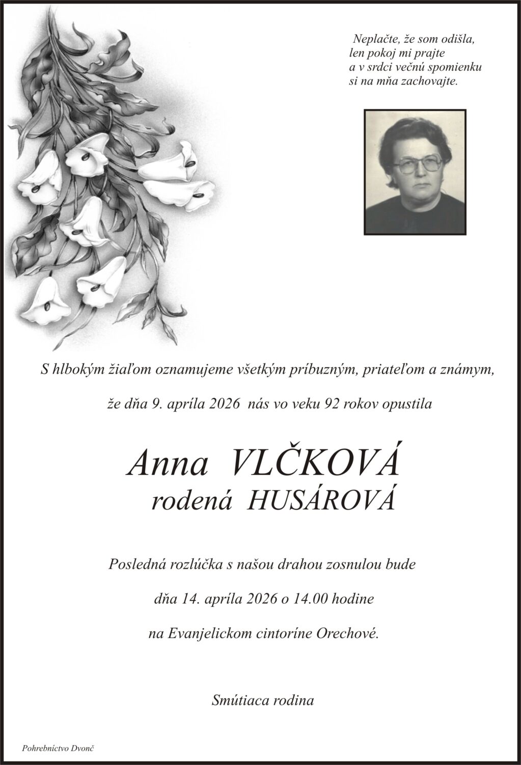nás opustil(a) dňa: 09.04.2026, vo veku 92 rokov.