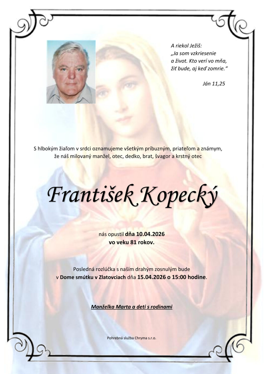 nás opustil(a) dňa: 10.04.2026, vo veku 81 rokov.