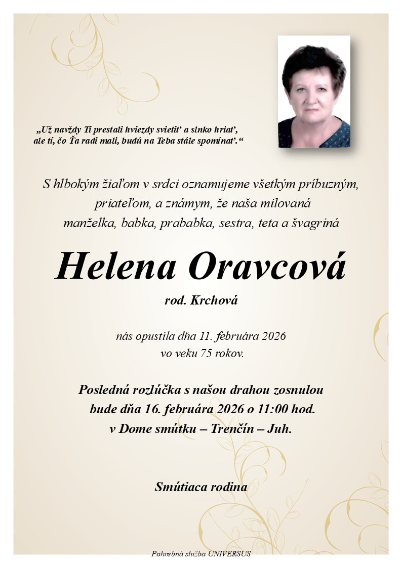 Posledná rozlúčka sa uskutoční dňa: 16.02.2026.