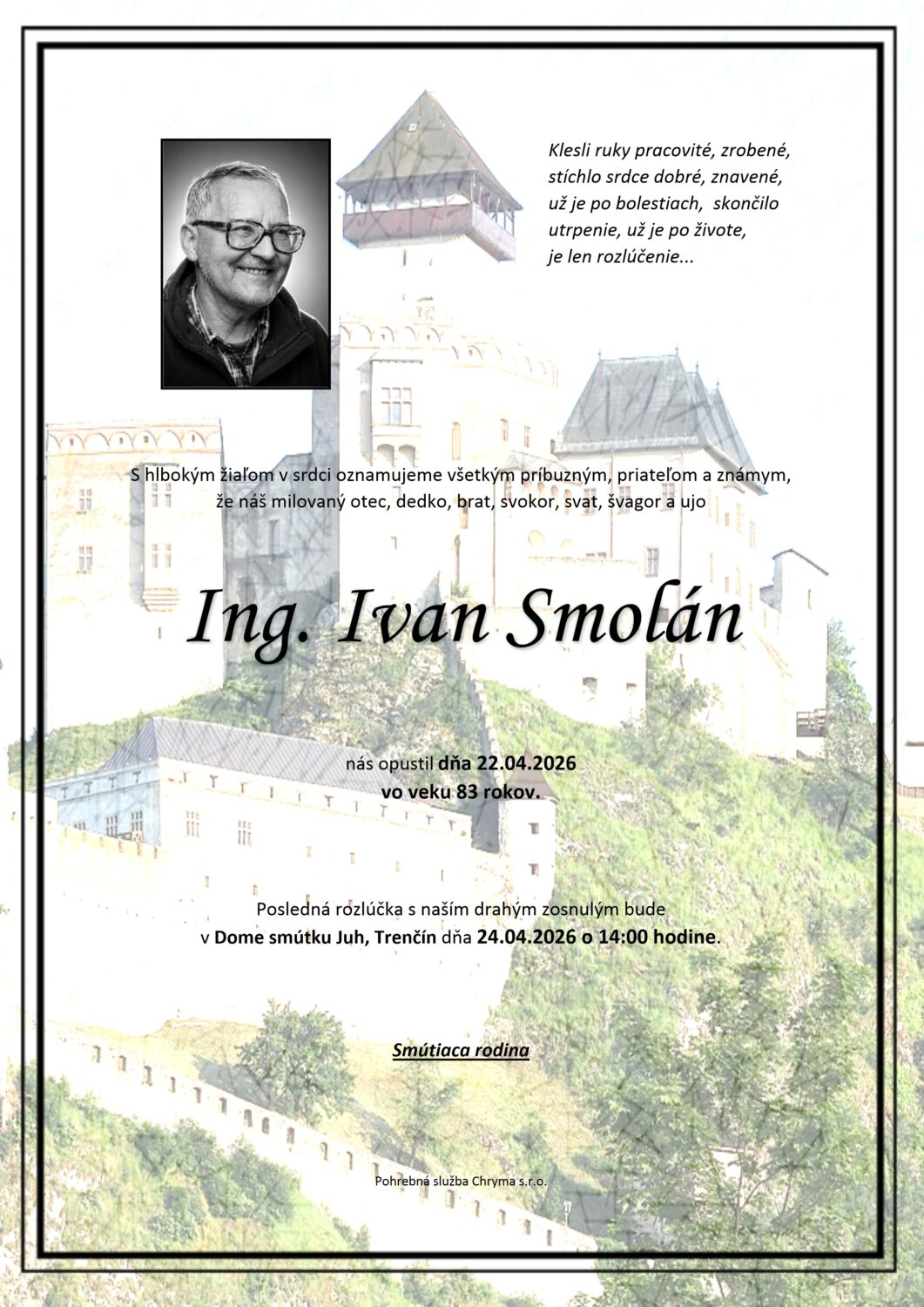 Posledná rozlúčka sa uskutoční dňa: 24.04.2026.