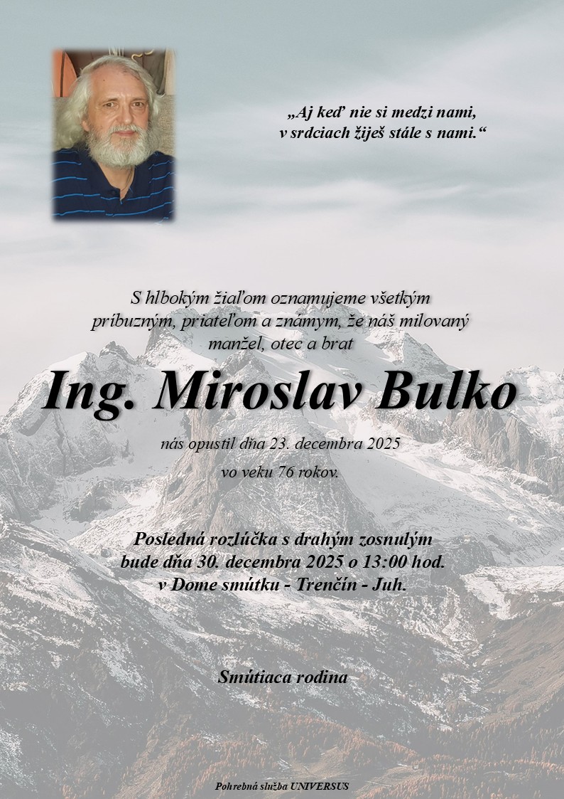 Posledná rozlúčka sa uskutoční dňa: 30.12.2025.