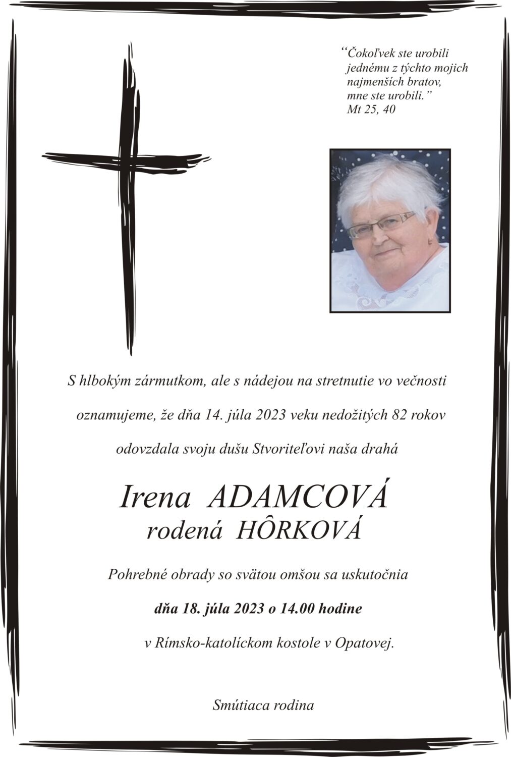 S hlbokým žiaľom oznamujeme všetkým príbuzným, priateľom a známym, že